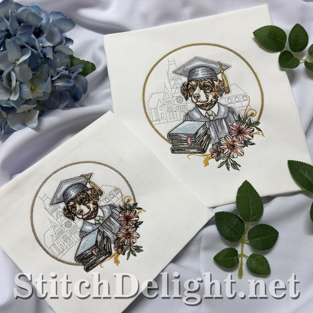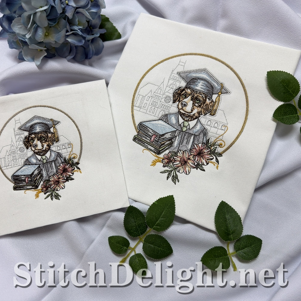 Celebrate academic achievement with a playful touch in your stitching projects with this adorable Little Graduate embroidery design. Featuring a sweet little pup wearing a graduation cap and gown, with a few books and soft floral embellishments in front, this design adds a fun and heartwarming accent to any creation. Perfect for dog lovers, graduates, or anyone who appreciates unique, beautifully detailed embroidery, it’s a charming way to mark a special milestone.