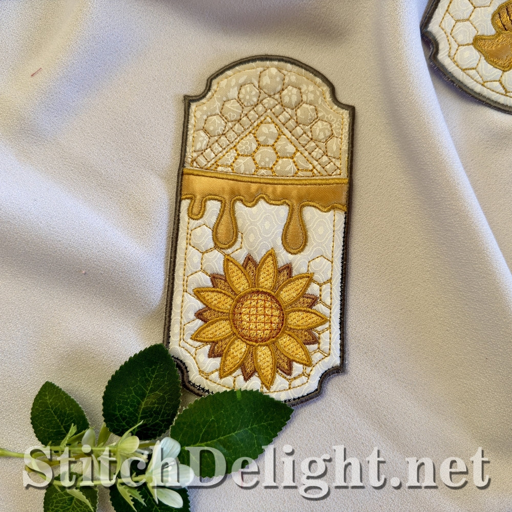 This stunning Bee cutlery pouches are done entirely in one single hooping. Included are 3 sizes, small for cake fork and tea spoon or kids cutlery for the 4x7 hoop, the next size 4x8 is perfect for fork and knife set and the large 5x10 is great for a full set with fork, knife and spoon.