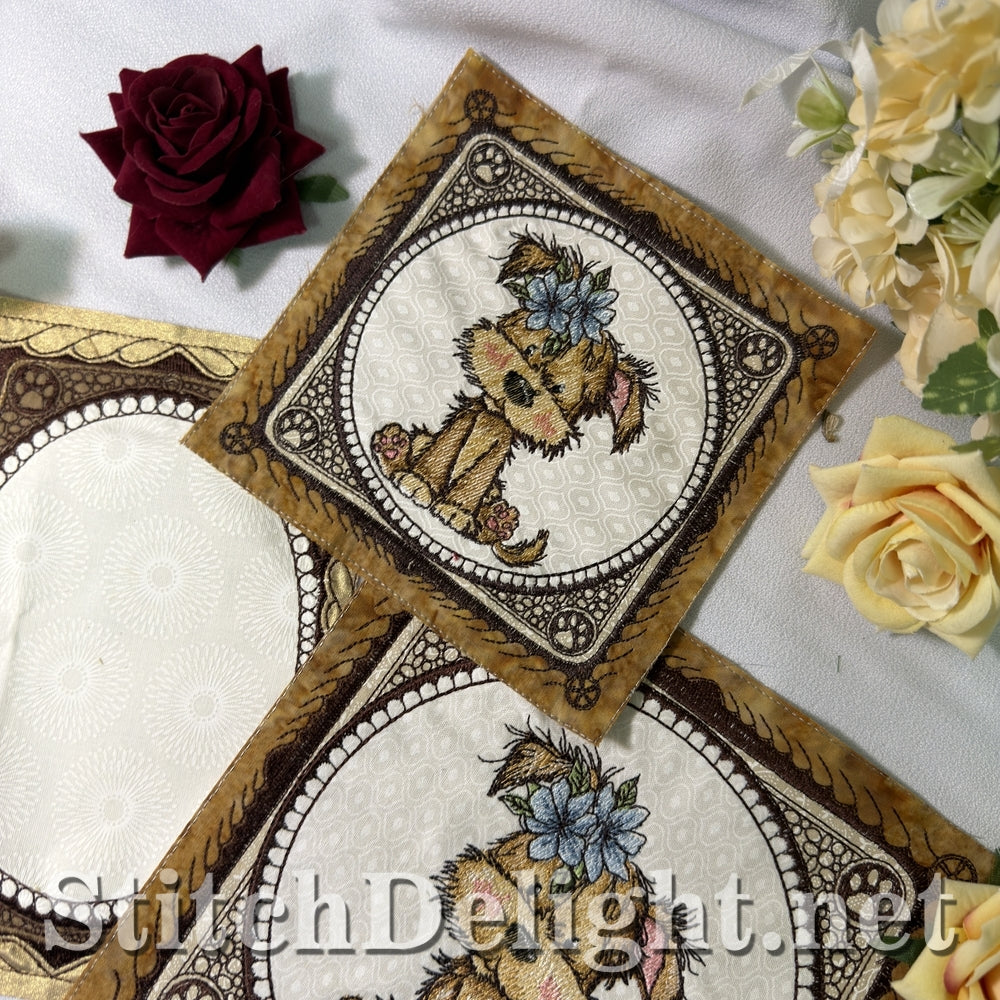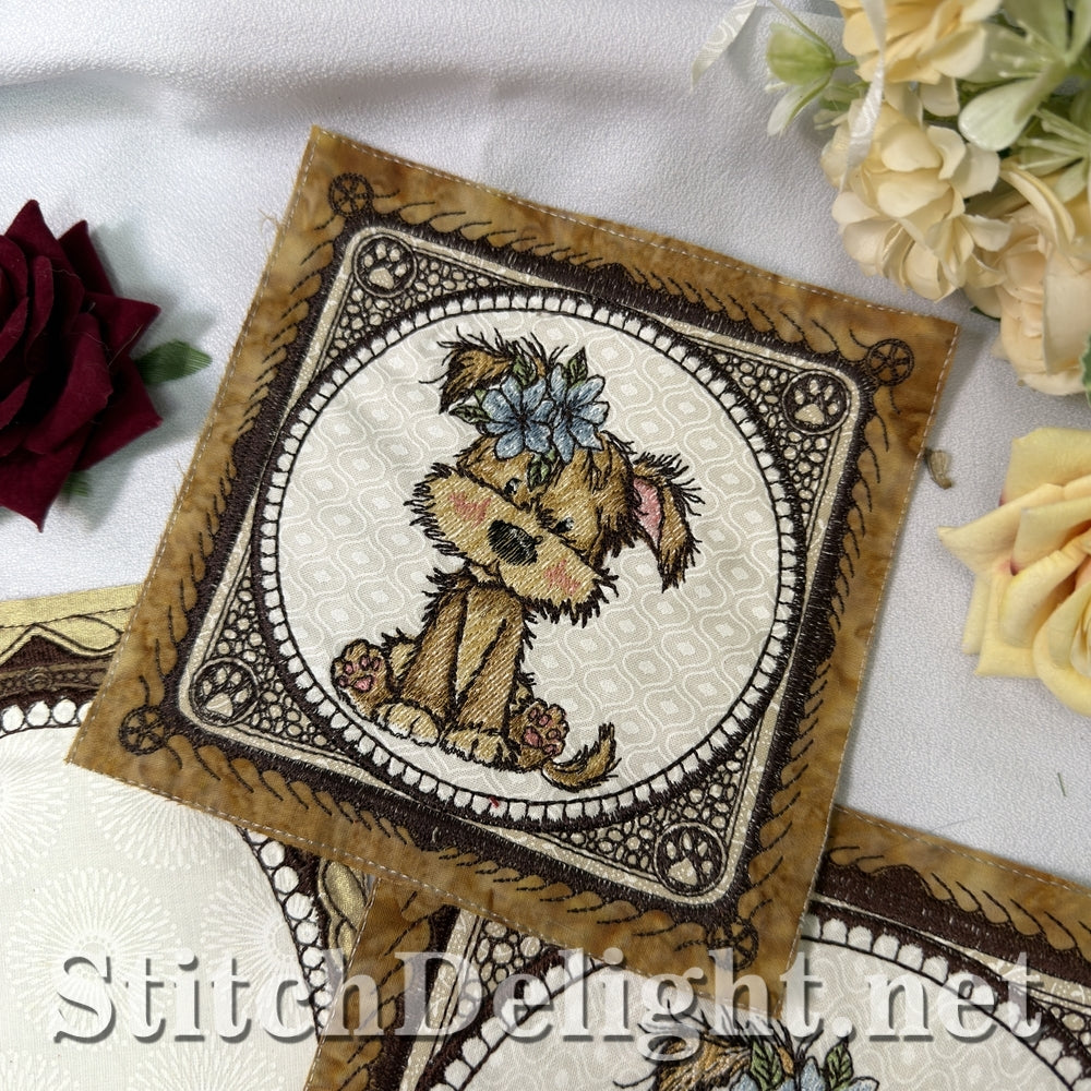 Puppy Quilt Block Embroidery Design – Multiple Hoop Sizes